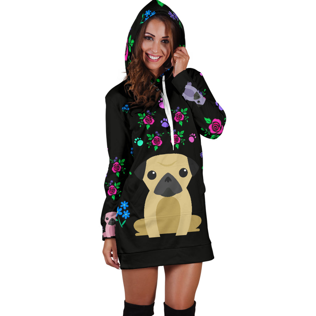 Pugs Hoodie Dress with Cute Pug Dogs