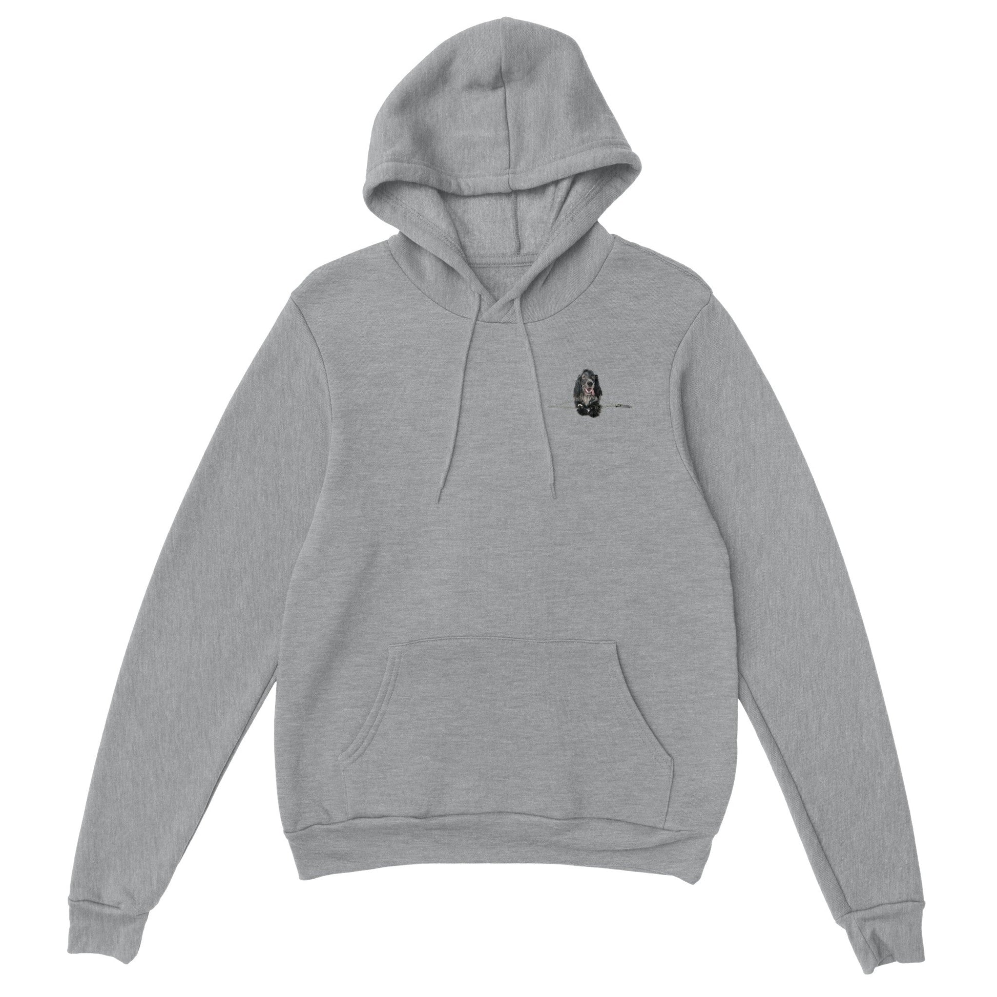 A classic hoodie with a large front pouch pocket and drawstrings in matching color.